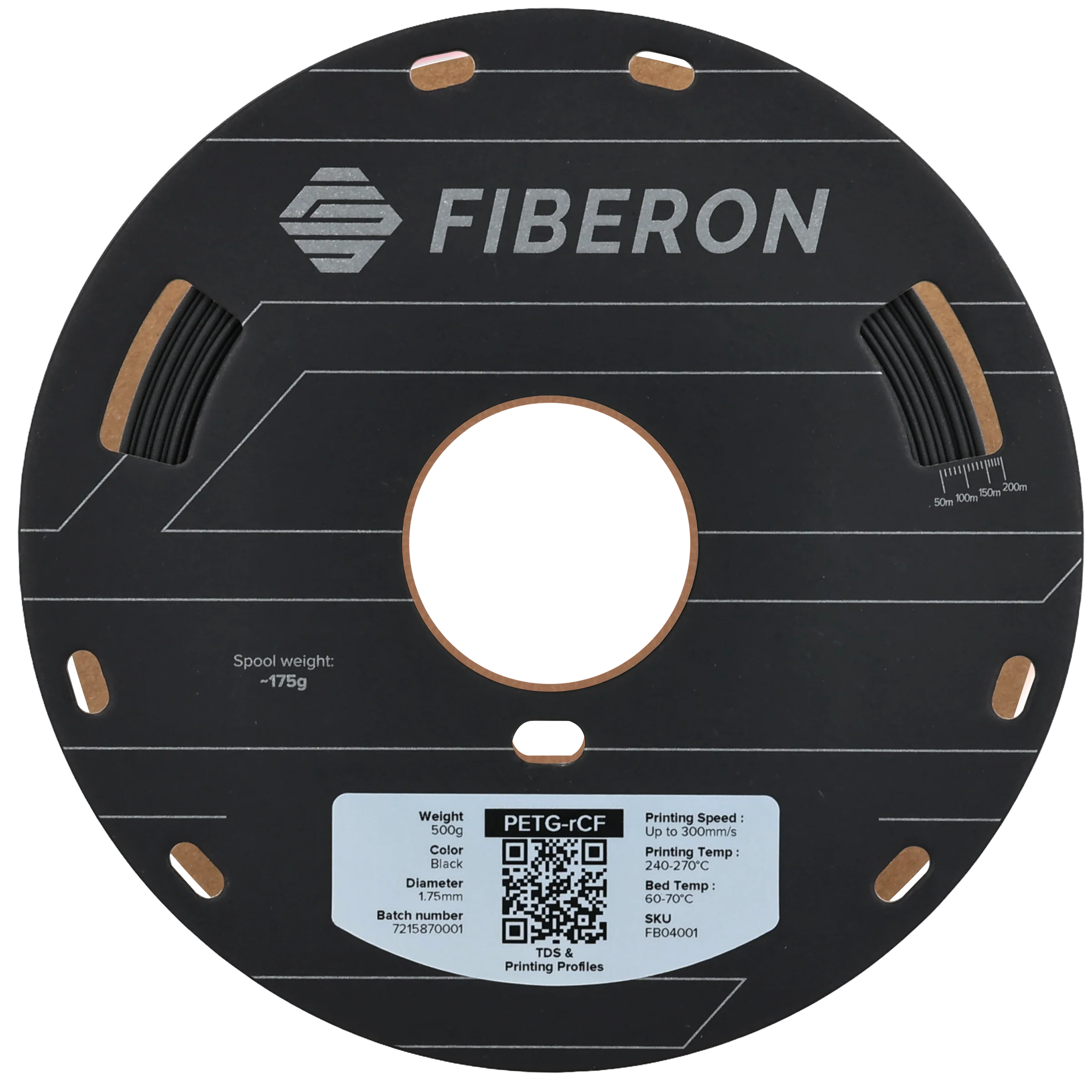Fiberon™ PETG-rCF08 is a high-quality 3D printing filament made from PETG (polyethylene terephthalate glycol) reinforced with 8% recycled carbon fiber. This sustainable composite combines the ease of printing and balanced properties of PETG with the added strength, rigidity, and unique surface finish provided by recycled carbon fiber.