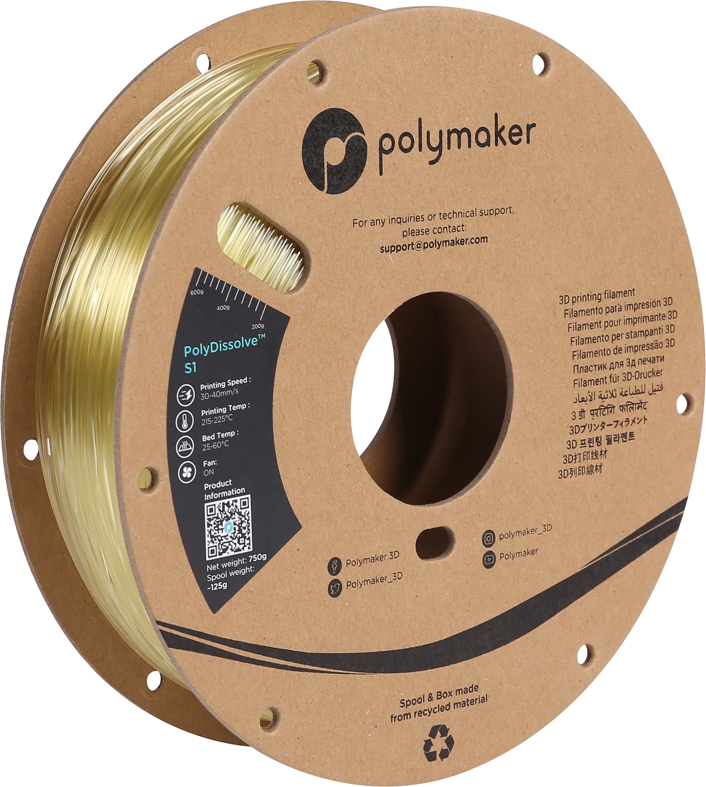 PolyDissolve™ S1 is a PVA-based filament engineered to provide water-soluble support for PLA, TPU, PVB, and Nylon-based filaments. It forms a perfect interface with these materials, offering strong support during printing and dissolving cleanly in water for easy post-processing.